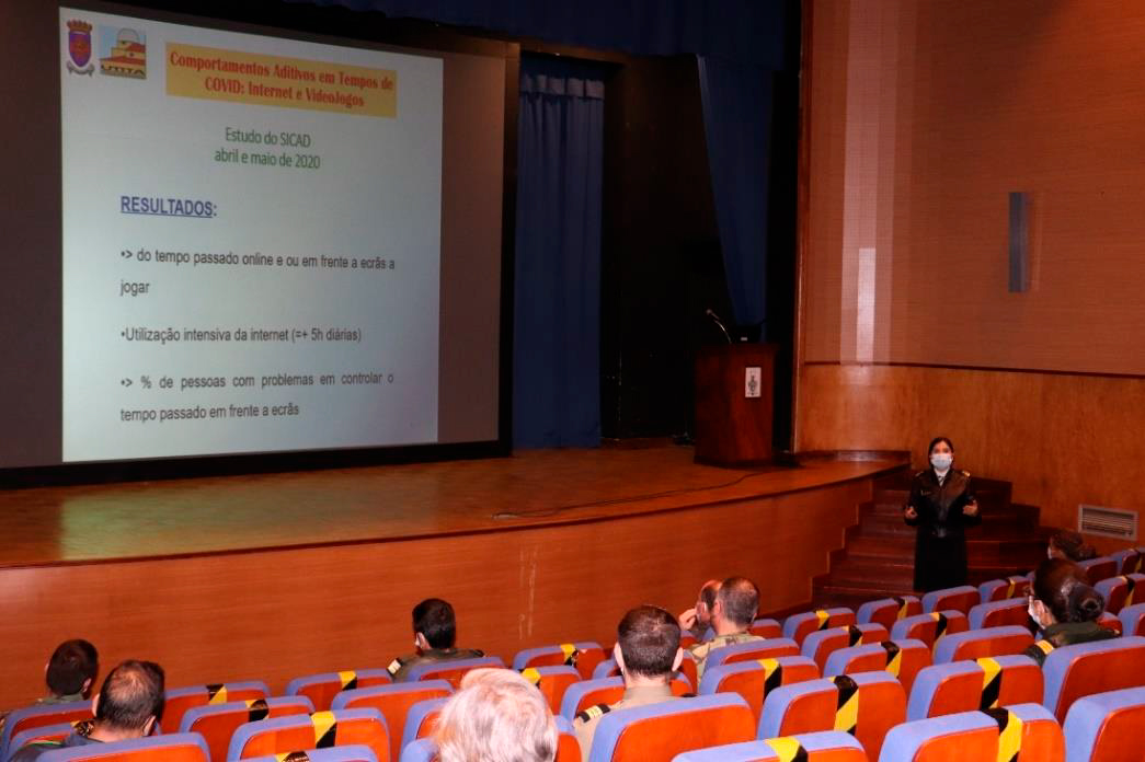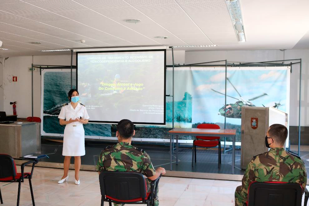 No Aeródromo de Manobra nº1 foram realizadas duas palestras, uma dirigida à guarnição, subordinada ao tema “Drogas, álcool e jogo: do consumo à adição” e outra às chefias e comando, intitulada “Comportamentos aditivos e dependências: qual o papel das chefias?”.
